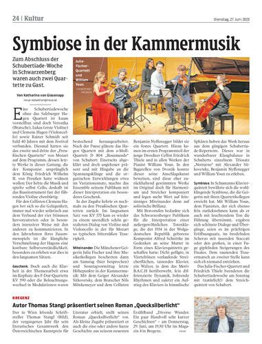 Zum Abschluss der Schubertiade-Woche in Schwarzenberg waren auch zwei Quartette zu Gast.