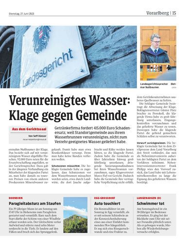 Getränkefirma fordert 415.000 Euro Schadenersatz, weil Standortgemeinde aus ihrem Wasserbrunnen verunreinigtes, nicht zum Verzehr geeignetes Wasser geliefert habe.