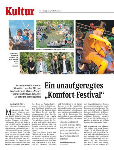 Zusammen mit anderen Künstlern werden Michael Köhlmeier und Marcus Nigsch beim Folkfestival Arbogast Lieder zum Besten geben.