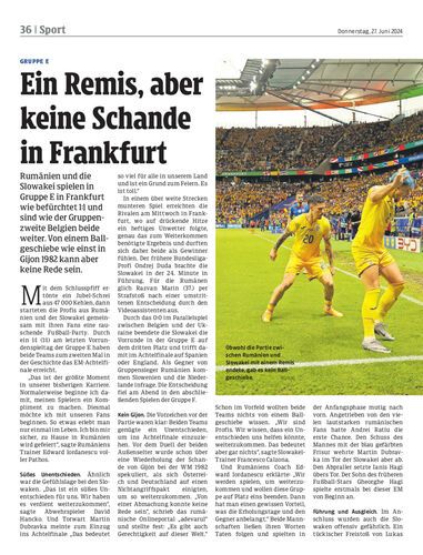 Rumänien und die Slowakei spielen in Gruppe E in Frankfurt wie befürchtet 1:1 und sind wie der Gruppenzweite Belgien beide weiter. Von einem Ballgeschiebe wie einst in Gijon 1982 kann aber keine Rede sein.