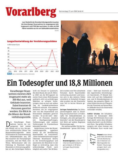 Vorarlberger Feuerwehren rückten 2023 insgesamt mehr als 300 Mal aus, weil Gebäude brannten. Dabei konnten 61 Personen gerettet werden. Ein Blick in die Bilanz der Brandverhütungsstelle.