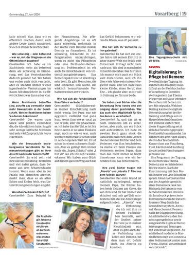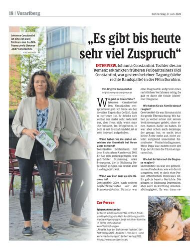 Interview. Johanna Constantini, Tochter des an Demenz erkrankten früheren Fußballtrainers Didi Constantini, war gestern bei einer Tagung (siehe rechte Randspalte) in der FH in Dornbirn.