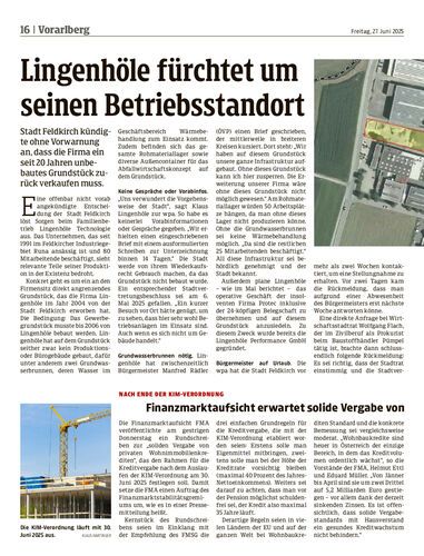 Stadt Feldkirch kündigte ohne Vorwarnung an, dass die Firma ein seit 20 Jahren unbebautes Grundstück zurück verkaufen muss.