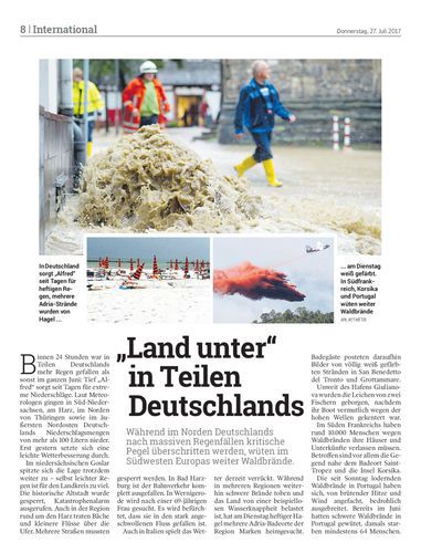 Während im Norden Deutschlands nach massiven Regenfällen kritische Pegel überschritten werden, wüten im Südwesten Europas weiter Waldbrände.