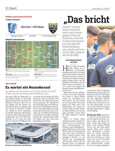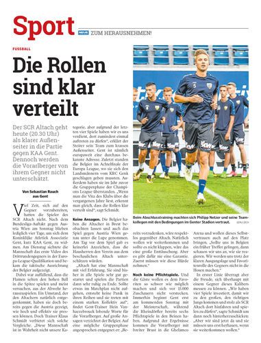 Der SCR Altach geht heute (20.30 Uhr) als klarer Außenseiter in die Partie gegen KAA Gent. Dennoch werden die Vorarlberger von ihrem Gegner nicht unterschätzt.