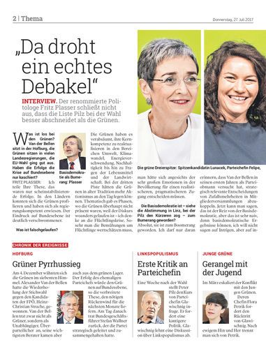 Der renommierte Politologe Fritz Plasser schließt nicht aus, dass die Liste Pilz bei der Wahl besser abschneidet als die Grünen.