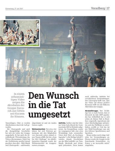 In einem zehnminütigen Video zeigen die Akrobaten der Gruppe Zurcaroh aus Götzis seit Kurzem ihr Können.