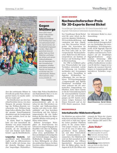 Vorarlberger Spezialist für 3D-Gesichtsmodelle und digitale Fabrikation bekommt Auszeichnung.