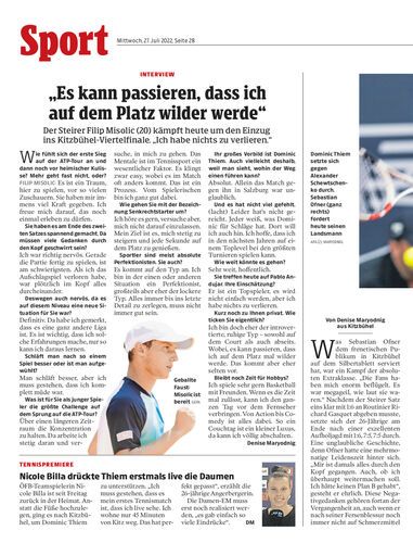 Der Steirer Filip Misolic (20) kämpft heute um den Einzug ins Kitzbühel-Viertelfinale. „Ich habe nichts zu verlieren.“