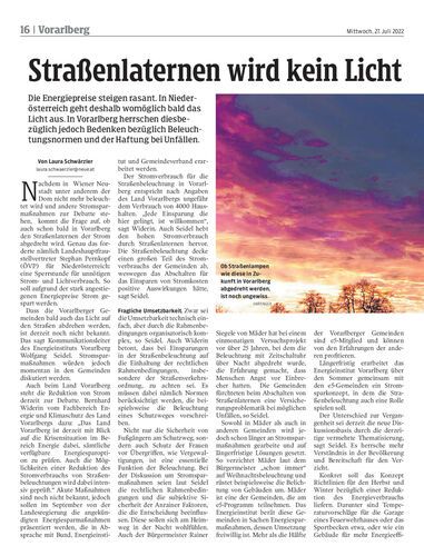 Die Energiepreise steigen rasant. In Niederösterreich geht deshalb womöglich bald das Licht aus. In Vorarlberg herrschen diesbezüglich jedoch Bedenken bezüglich Beleuchtungsnormen und der Haftung bei Unfällen.
