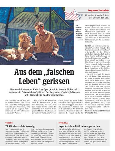 Heute wird Johannes Kalitzkes Oper „Kapitän Nemos Bibliothek“ erstmals in Österreich aufgeführt. Der Regisseur Christoph Werner gibt Einblicke in das Figurentheater.