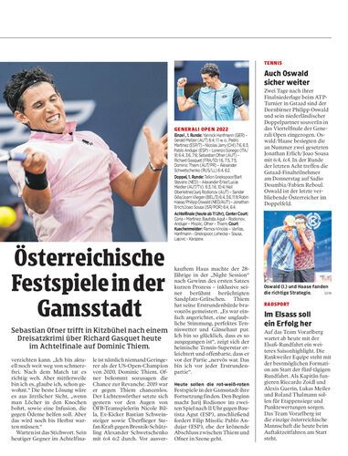 Sebastian Ofner trifft in Kitzbühel nach einem Dreisatzkrimi über Richard Gasquet heute im Achtelfinale auf Dominic Thiem.