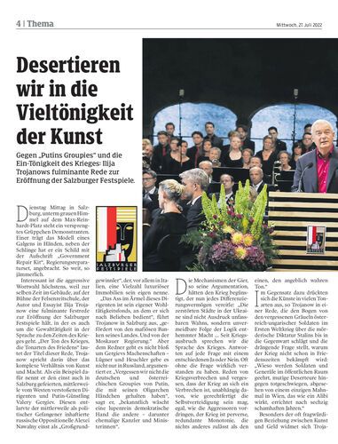 Gegen „Putins Groupies“ und die Ein-Tönigkeit des Krieges: Ilija Trojanows fulminante Rede zur Eröffnung der Salzburger Festspiele.