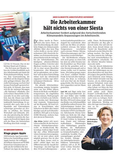 Arbeiterkammer fordert aufgrund des fortschreitenden Klimawandels Anpassungen im Arbeitsrecht.