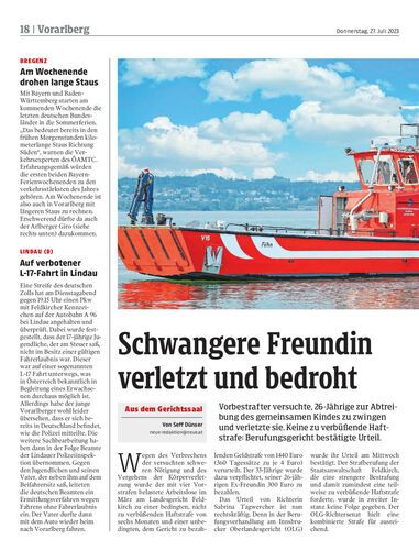 Vorbestrafter versuchte, 26-Jährige zur Abtreibung des gemeinsamen Kindes zu zwingen und verletzte sie. Keine zu verbüßende Haftstrafe: Berufungsgericht bestätigte Urteil.