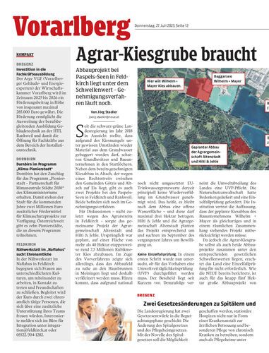 Abbauprojekt bei Paspels-Seen in Feldkirch liegt unter dem Schwellenwert – Genehmigungsverfahren läuft noch.