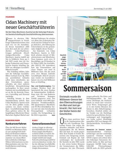 Bei der Cidan Machinery Austria hat die bisherige Prokuristin Daniela Schelling die Geschäftsführung übernommen.