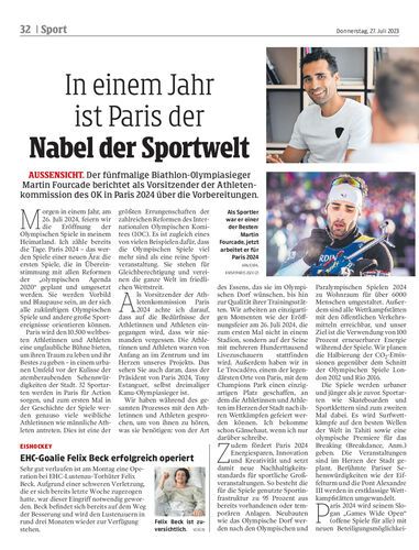AUSSENSICHT. Der fünfmalige Biathlon-Olympiasieger Martin Fourcade berichtet als Vorsitzender der Athletenkommission des OK in Paris 2024 über die Vorbereitungen.