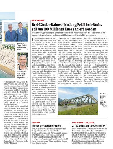 Drei-Länder-Bahnverbindung Feldkirch-Buchs soll um 100 Millionen Euro saniert werden