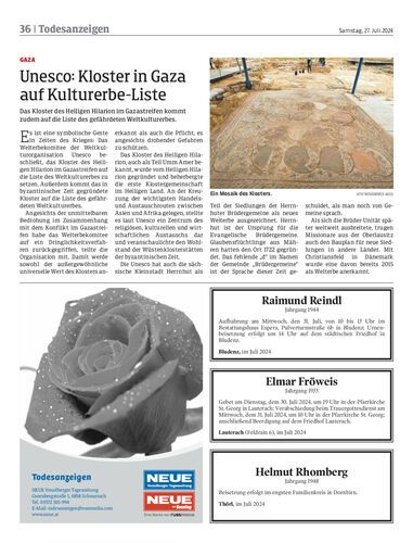 Unesco: Kloster in Gaza auf Kulturerbe-Liste