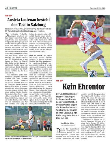 Die Lustenauer Austria gewann das Cup-Spiel auswärts bei SV Wals/Grünau letztendlich knapp, aber verdient.