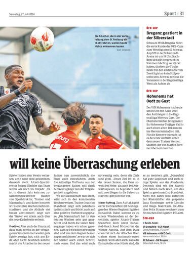 Für den SCR Altach startet die Pflichtspielsaison heute (17.30 Uhr) im ÖFB-Cup mit einem Spiel bei der SR Donaufeld. Für die Rheindörfler zählt gegen den Regionalligisten natürlich nur ein Weiterkommen.