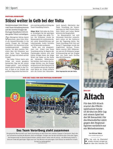 Vorjahressieger Colin Stüssi vom Team Vorarlberg konnte auf der zweiten Etappe der Portugal-Rundfahrt (UCI 2.1) das gelbe Trikot verteidigen.