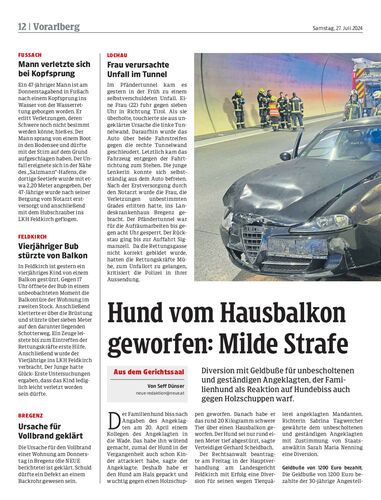 Diversion mit Geldbuße für unbescholtenen und geständigen Angeklagten, der Familienhund als Reaktion auf Hundebiss auch gegen Holzschuppen warf.
