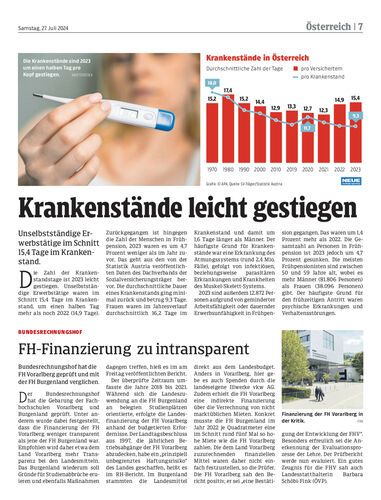 Unselbstständige Erwerbstätige im Schnitt 15,4 Tage im Krankenstand.