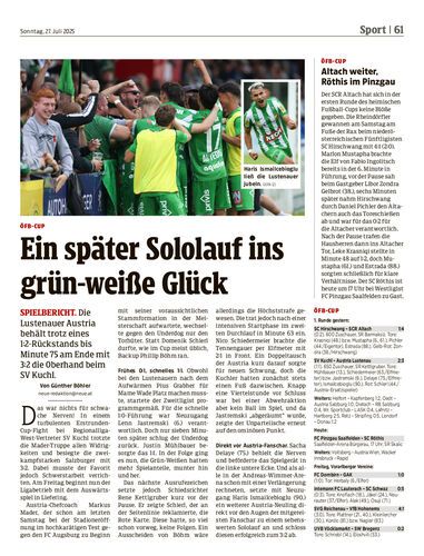 Spielbericht. Die Lustenauer Austria behält trotz eines 1:2-Rückstands bis Minute 75 am Ende mit 3:2 die Oberhand beim SV Kuchl.