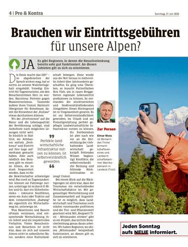 Brauchen wir Eintrittsgebühren für unsere Almen?