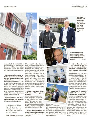 Interview. Seit 22 Jahren lenkt Elmar Rhomberg die politischen Geschicke der Marktgemeinde Lauterach. Warum ihm die Leidenschaft für seine Berufung im wahrsten Sinne des Wortes wieder auf die Beine half, verrät der 61-Jährige im Gespräch mit der NEUE am Sonntag.