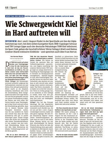Interview. Am 1. und 2. August findet in der Sporthalle am See der Alpla Sommercup statt, bei dem neben Gastgeber Hard, ÖHB-Cupsieger Schwaz und TBV Lemgo Lippe auch der deutsche Pokalsieger THW Kiel teilnimmt. Im Sport-Talk geben die Geschäftsführer Viktor Szilágyi (Kiel) und Heimo Lindner (Hard) exklusive Einblicke – und sprechen auch über Ivan Horvat.