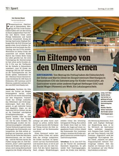 Hintergrund. Von Montag bis Freitag haben die Eishockeybrüder Stefan und Martin Ulmer im Eissportzentrum Oberthurgau in Romanshorn (CH) ein Sommercamp für Kinder veranstaltet, als Gasttrainer waren unter anderen Raphael Herburger (KAC) und Daniel Woger (Pioneers) am Werk. Ein Lokalaugenschein.