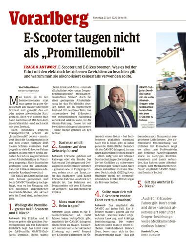 Frage & Antwort. E-Scooter und E-Bikes boomen. Was es bei der Fahrt mit den elektrisch betriebenen Zweirädern zu beachten gilt, und warum man sie alkoholisiert keinesfalls verwenden sollte.