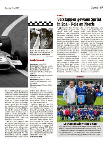 Verstappen gewann Sprint in Spa – Pole an Norris