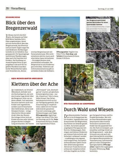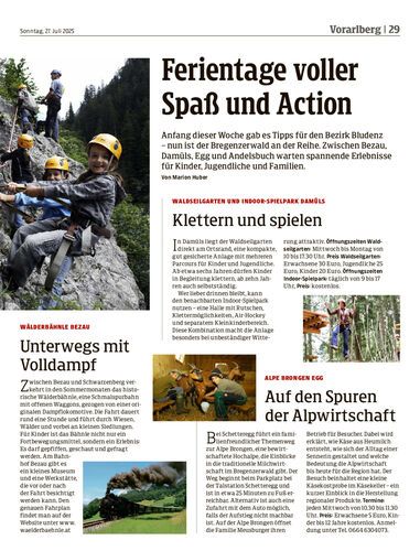 Anfang dieser Woche gab es Tipps für den Bezirk Bludenz – nun ist der Bregenzerwald an der Reihe. Zwischen Bezau, Damüls, Egg und Andelsbuch warten spannende Erlebnisse für Kinder, Jugendliche und Familien.