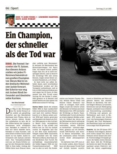 Serie. Die Formel 1 bestreitet die 75. Saison. Aus diesem Anlass stellen wir jedes F1-Rennwochenende einen großen Champion vor. Dieses Mal ist es der dreifache Weltmeister Jackie Stewart. Der Schotte war eng mit Jochen Rindt befreundet und überlebte seine Karriere.