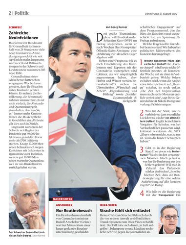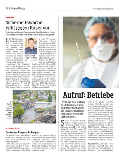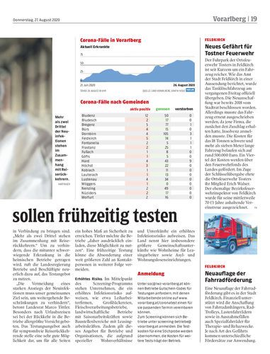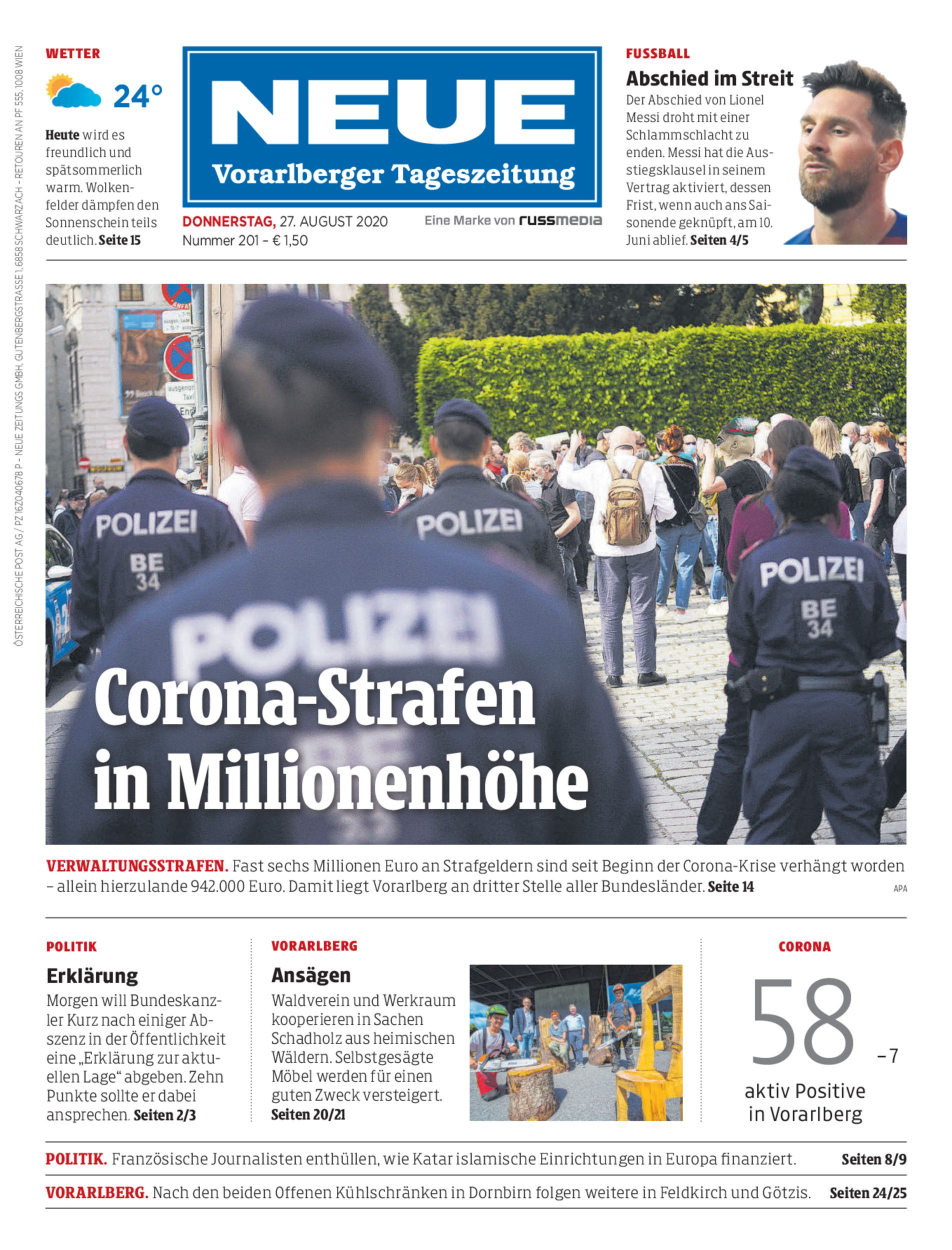 Verwaltungsstrafen. Fast sechs Millionen Euro an Strafgeldern sind seit Beginn der Corona-Krise verhängt worden – allein hierzulande 942.000 Euro. Damit liegt Vorarlberg an dritter Stelle aller Bundesländer. Seite 14 apa