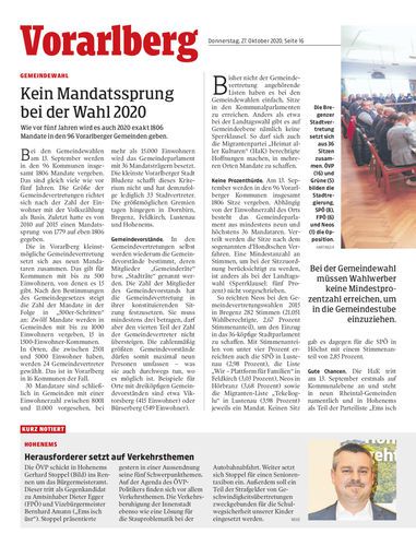 Wie vor fünf Jahren wird es auch 2020 exakt 1806 Mandate in den 96 Vorarlberger Gemeinden geben.