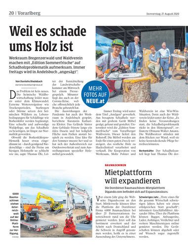 Werkraum Bregenzerwald und Waldverein machen mit „Edition Sommerfrische“ auf Schadholzproblematik aufmerksam. Immer freitags wird in Andelsbuch „angesägt“.