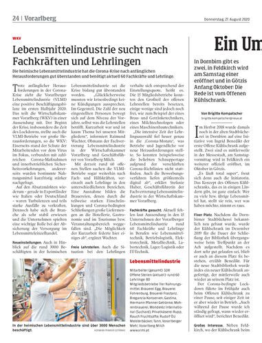 Die heimische Lebensmittelindustrie hat die Corona-Krise nach anfänglichen Herausforderungen gut überstanden und benötigt aktuell 60 Fachkräfte und Lehrlinge.