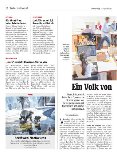 Bett, Bürostuhl, Sofa, Bett: Spanische Studie warnt vor Bewegungsmangel, Österreich schneidet schlecht ab.