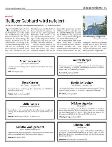 Mit einem Gottesdienst erfolgt heute der Auftakt zur Gebhardswoche.