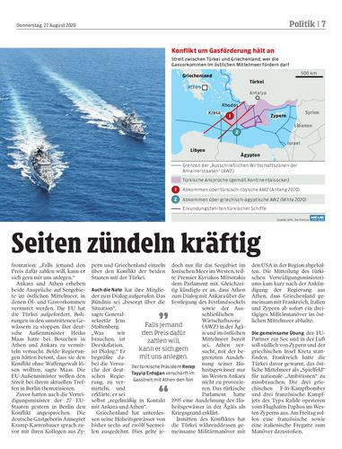 Die Türkei zeigt sich im Gasstreit kompromisslos und die Griechen bereiten eine Ausweitung der Hoheitsgewässer vor.