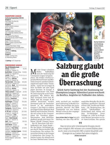 Glück hatte Salzburg bei der Auslosung zur Champions League. Valentino Lazaro wechselt zu Benfica. Jorginho ist Fußballer des Jahres.