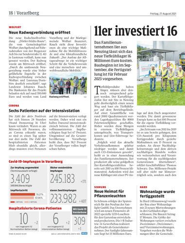 Das Familienunternehmen 11er aus Nenzing lässt sich das neue Tiefkühllager 16 Millionen Euro kosten. Baubeginn ist im September, die Fertigstellung ist für Februar 2023 vorgesehen.