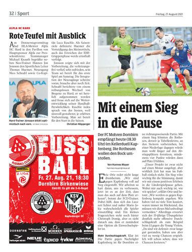 Der FC Mohren Dornbirn empfängt heute (18.30 Uhr) im Kellerduell Kapfenberg. Die Rothosen wollen den Bock umstoßen.