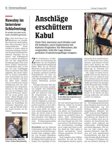 Viele Tote, darunter auch Kinder und US-Soldaten, nach Explosionen bei Kabuler Flughafen. Für Menschen, die wegwollen, wird die Lage immer prekärer, Evakuierungsflüge stoppen.