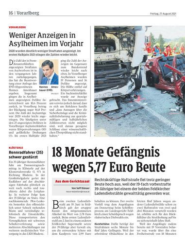 Rechtskräftige Haftstrafe fiel trotz geringer Beute hoch aus, weil der 19-fach vorbestrafte 39-Jähriger bei einem der beiden Feldkircher